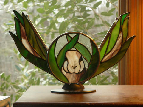 Stained glass panels and sculptural inserts into bike parts and other objects.